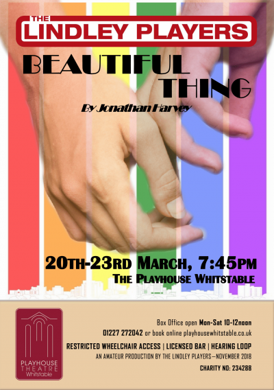 Past Productions Beautiful Thing December 1, 2021 Posted by Amanda Gerrard 20 Mar 20th - 23rd March 2019 (4 shows) Beautiful Thing Directed by Peter Simpson