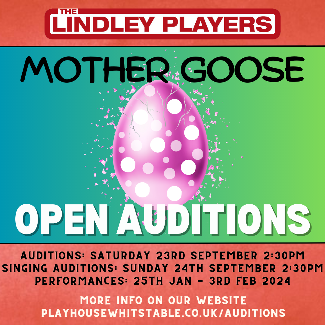 Audition dates are currently Saturday 23rd Sept with a second date being found for those who cannot make this. There will also be a singing-based audition on Sunday 24th Sept, together with Flint Street Nativity, to get both of these shows auditioned around the same time. Due to the size of the commitment, it wouldn’t be possible to be cast in a Principal Role in Mother Goose AND in Flint Street Nativity, so myself and Becs will be liaising to confirm the most workable casting, if people do audition for both shows.